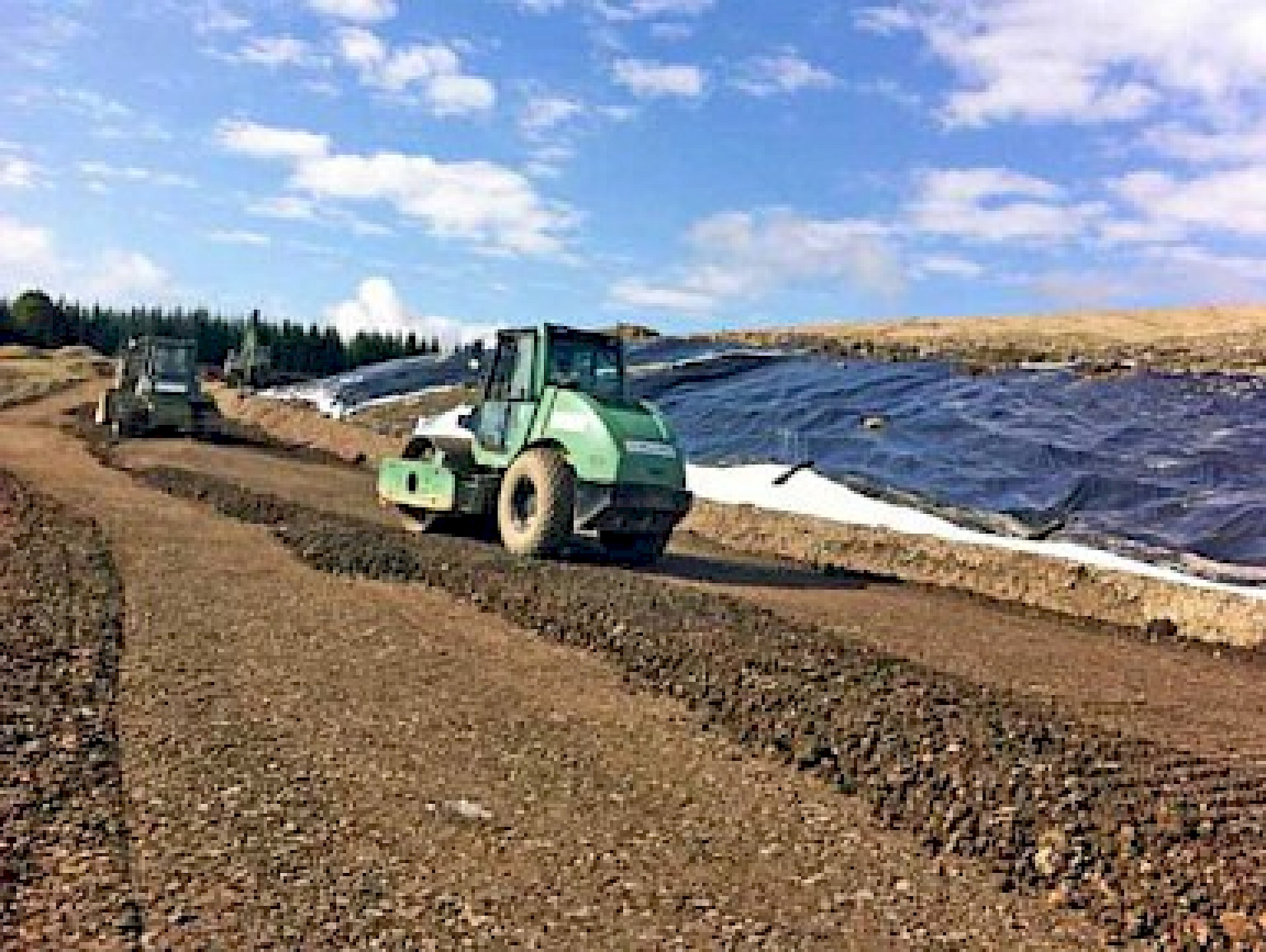- ca. 12.500 m² Herstellung Abdichtung mit BAM-zugelassener Kunststoffdichtungsbahn (KDB 2,5 mm)